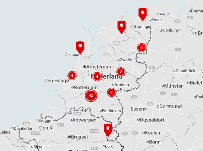 We hebben een landelijk netwerk van 33 eigen stations verspreid over Nederland.